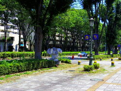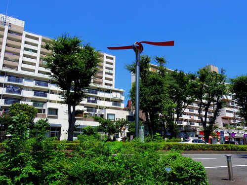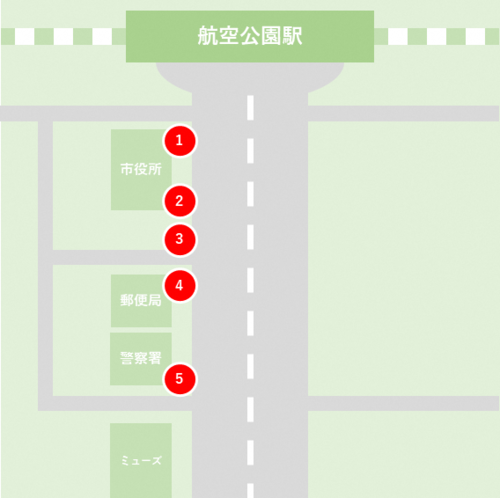 西武新宿線「航空公園駅」東口から出て、大通り沿いに作品が点在しています。