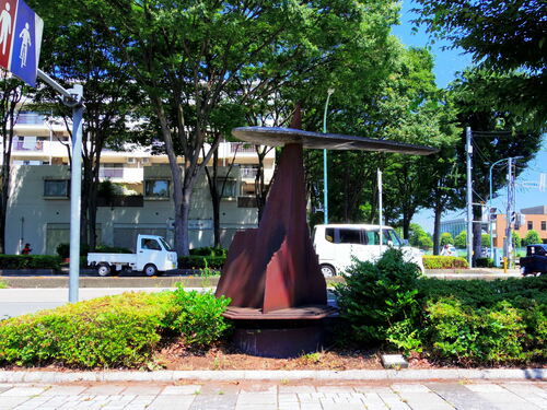 見方によってプロペラや飛行機の羽にも見える作品です。所沢といえば「航空」ということで、航空公園駅から歩いて、最初の彫刻となるように設置されました。