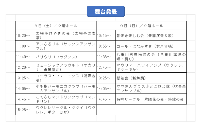 舞台発表(2階ホール)≪舞台発表プログラム≫