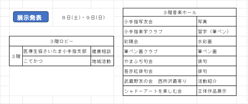 【11月8日・11月9日】第33回小手指まちづくりセンター分館文化祭