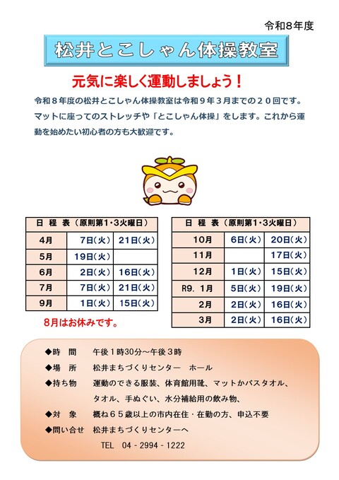 令和8年度「松井とこしゃん体操教室]