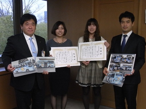 藤本市長から感謝状を贈呈しました。日本大学芸術学部デザイン学科のみなさん、ありがとうございました。