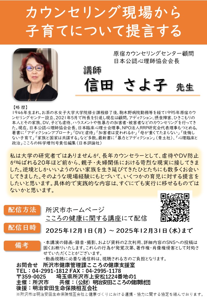 - 「カウンセリング現場から子育てについて提言する」の動画視聴はこちら(外部サイト)です。