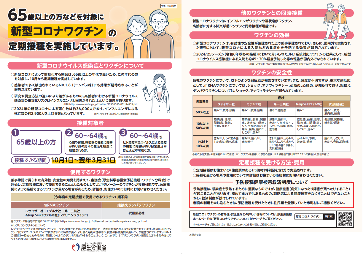 令和7年度新型コロナウイルス感染症予防接種