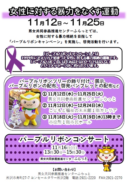 毎年11月12日から11月25日までは、「女性に対する暴力をなくす運動」期間です。