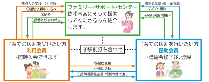 利用会員、援助会員ともにあらかじめ登録が必要となります。