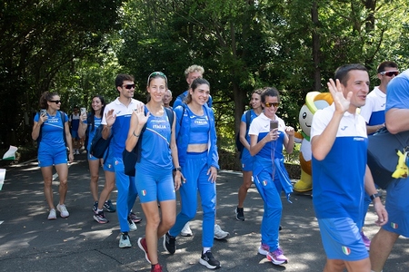 世界陸上イタリア代表チーム100人ほどが早稲田大学を訪れ、市民の方々や地元の小学生らと交流を深めました。