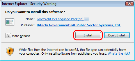 "ZoomSight" will display the following message when the installation of the Language-Pack become necessary.