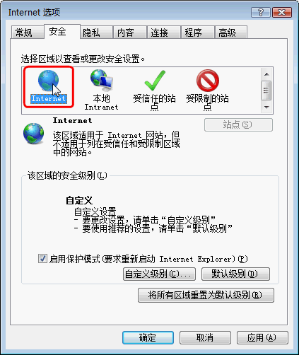 步骤3:选择Internet区域