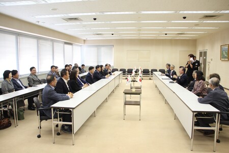 この訪問は、姉妹都市である、大韓民国安養市から安養市韓日親善協会友好訪問団が市民交流事業の一環として来訪したもので、定期的な交流として行われています。所沢市からは、所沢市国際友好委員会の委員の方にもご参加いただき、和やかな歓談が行われました。