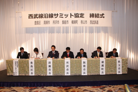 豊島区長・清瀬市長・所沢市長・飯能市長・秩父市長・横瀬町長・西武鉄道の7者による都市間連携に関するシンポジウムなどの開催を目指します。