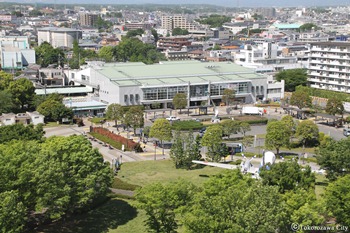 東口駅前広場にはYS-11型輸送機が展示してある。