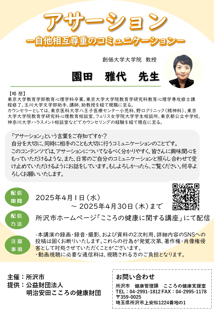 - 「アサーション-自他相互尊重のコミュニケーション-」の動画視聴はこちら(外部サイト)です。