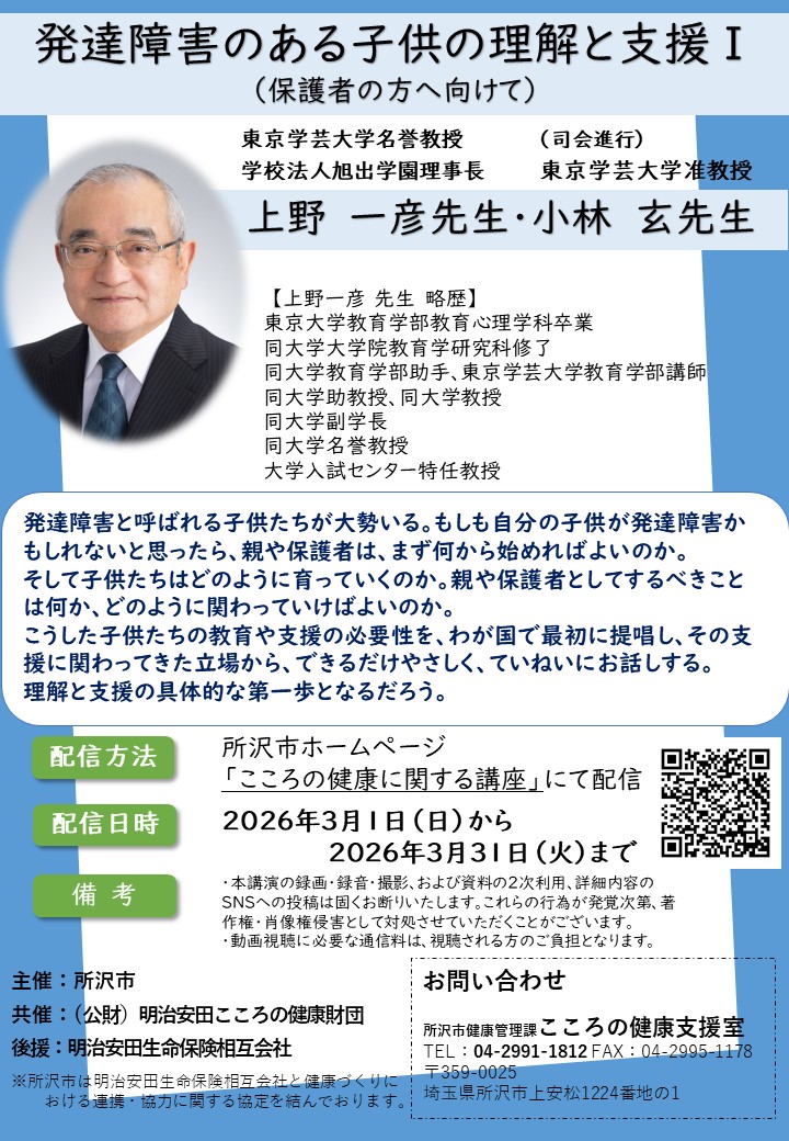 セミナー動画「発達障害のある子供の理解と支援」を配信しています。