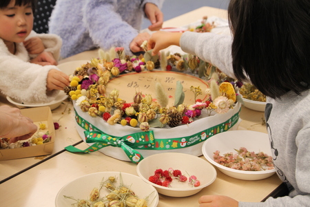 令和7年度障害のある人もない人も誰でもできるワークショップ「ドライフラワーでクリスマスケーキを作ろう!」開催報告