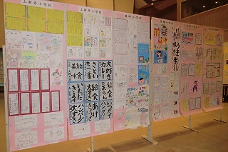各小中学校の作品や、給食写真などたくさんの展示があります