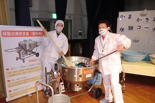 児童・生徒の作品展示、「学校給食の歴史」「学校給食の食器」「わが校、わがセンターのおすすめ献立」などの展示、給食に使用している釜のかき混ぜ体験、クイズラリー(回答すると景品がもらえます。)などを行います。