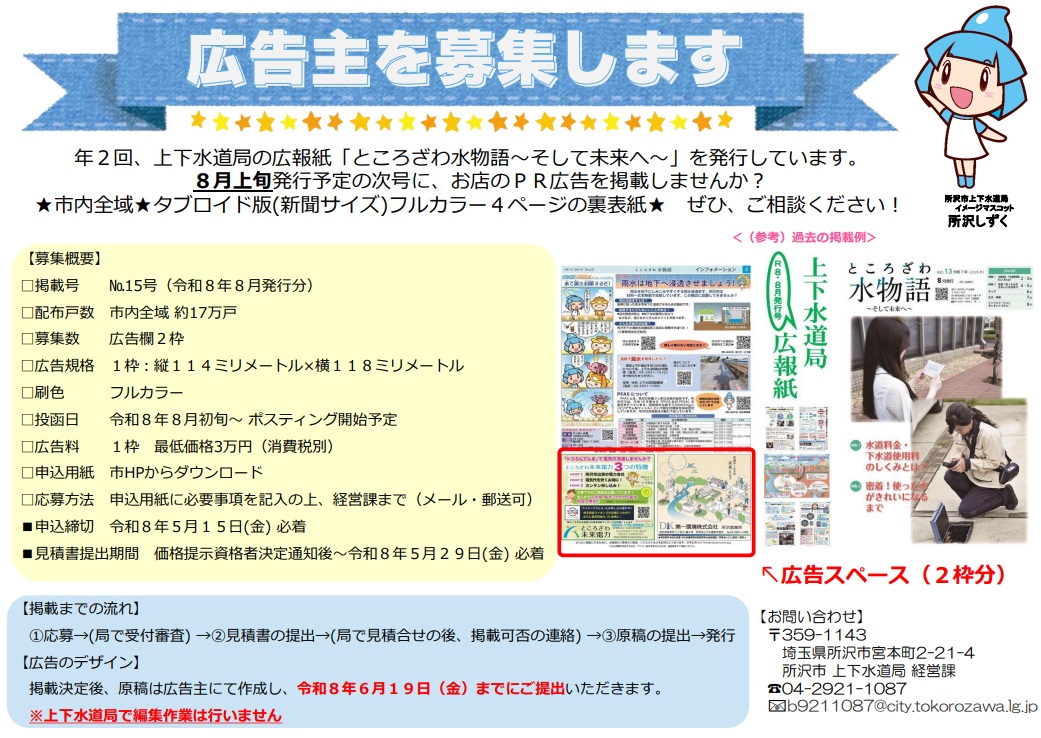 上下水道局広報紙「ところざわ水物語」の広告主募集