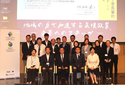 2024年10月24日(木曜)、名古屋大学にて開催されたワークショップ「地域の力で加速する気候政策―未来へのステップ―」に参加しました。午前は公開イベントとして、環境省職員による基調講演、北海道上士幌町ゼロカーボン推進課長による「ゼロカーボン かみしほろサミット」の報告に続き、6月にバンコクで開催されたGCoMアジア・クロージングワークショップに参加したうちの5自治体が取組み紹介やパネルディスカッションを行いました。