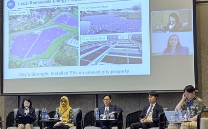 1日目のワークショップのパネルディスカッションは6つあり、参加者がそれぞれの自治体の気候変動に対する取組みを発表し、意見交換しました。所沢市は「自治体におけるエネルギー転換」をテーマとしたセッションにて登壇し、市の未利用地を活用した大規模な太陽光発電設備の導入や地域新電力の設立、気候市民会議による市民連携などについて世界に発信しました。