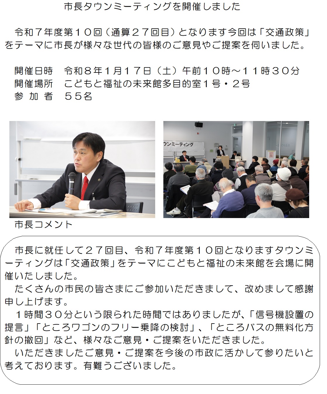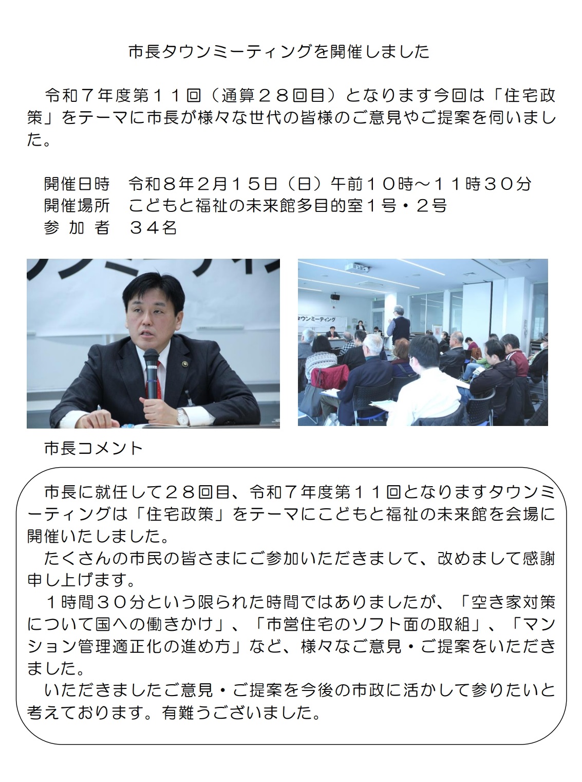 - このタウンミーティングで皆様からいただいたご意見やご要望は、今後の住みよいまちづくりに活かしてまいります。