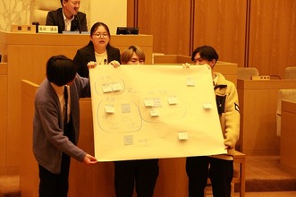 その後、各グループで話し合ったことを議場で発表しました。