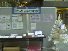 11月12日から25日はふらっと、11月20日から12月25日はこどもと福祉の未来館1階ガレリア、11月21日と22日は市役所1階市民ホールにおいて、パープルリボンを配布しパープルリボンツリーへの飾り付け・展示、パープルリボンキルトの展示等を行いました。