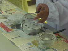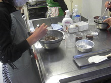 環境にやさしいエコ・クッキングを紙芝居で学んだあと、ガトーショコラの生地をつくり魚焼きグリルで焼きました。