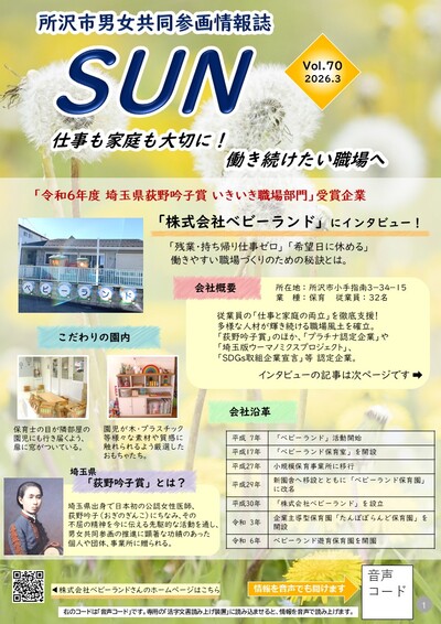 男女共同参画情報誌「SUN」第70号(令和8年3月発行)