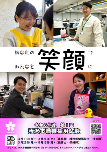 所沢市では、次のとおり職員を募集します。採用予定時期は令和7年4月1日以降です。
