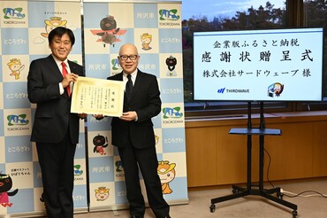 株式会社サードウェーブ様から、企業版ふるさと納税を活用したご寄附をいただき、感謝の意を表するために感謝状贈呈式を執り行いました。