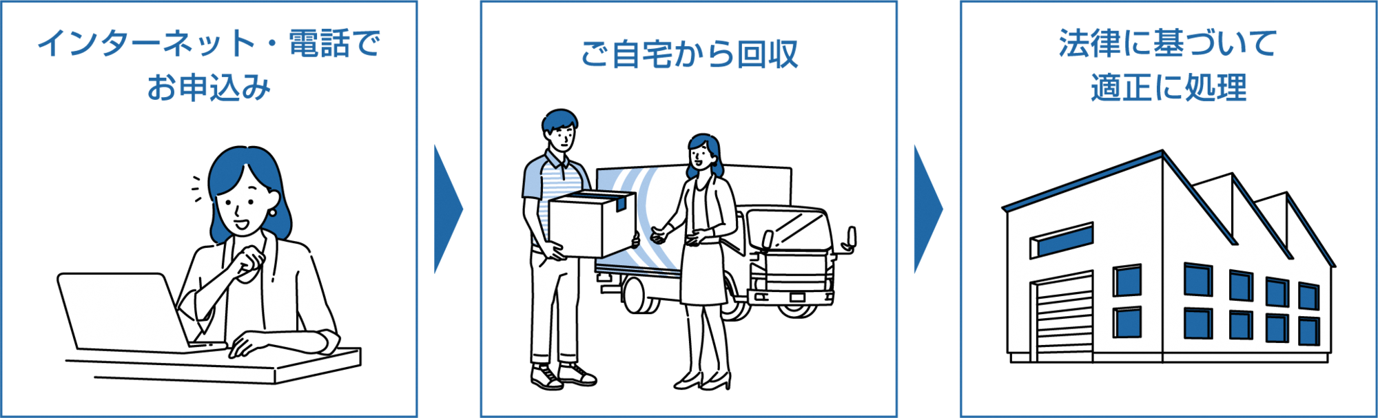 家電リサイクル法に則った合法かつ円滑な回収・処理により正しく資源化されます。