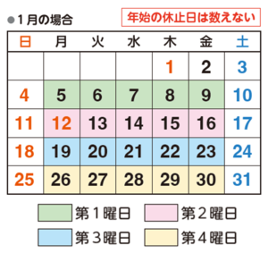 1月3日までは収集日に数えず、5日からの1週間を第1週と数えます。