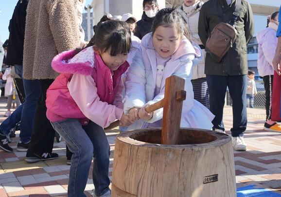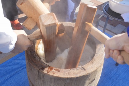 風もなく青空の広がる晴天の日。YOT-TOKOで昔ながらの餅つきの体験イベントが開催されました。開始前から大勢の方が列を作り、餅つきを心待ちにしている様子でした。もち米の炊き上がった後に餅つき体験がスタートし、始まると「ヨイショ~!」という掛け声が響いていました。臼に入ったお餅に杵を振り下ろしながら、大人もこどもも笑顔で楽しそうに餅つきをする姿が印象的でした。