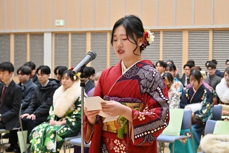 二十歳代表のことばでは、家族、先生への感謝の言葉、これからの決意が語られました。