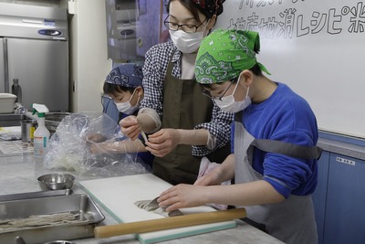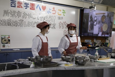 所沢市と西武学園医学技術専門学校は、地産地消の推進に向けた連携事業として親子料理教室を開催しました。令和7年度発行の『所沢農産物を活用した地産地消レシピVol.15』で表紙を飾った「狭山茶の2色うどん」のレシピを考案した学生が講師となり、おいしくつくるコツ等を直接伝えるものです。