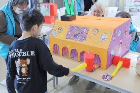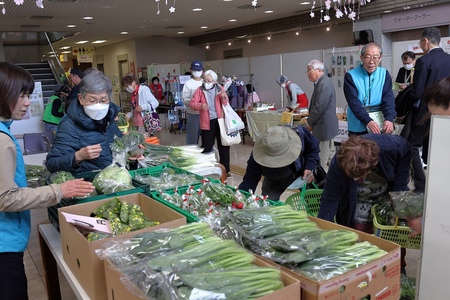 また有志の農家による野菜販売は、新鮮な朝どれ野菜を求めて販売前から行列ができるほどの盛況ぶり。もぐらたたきコーナーでは、もぐらの出現スピードが変化する仕掛けがあり、こどもだけでなく大人も本気で楽しむ姿がとても印象的でした。