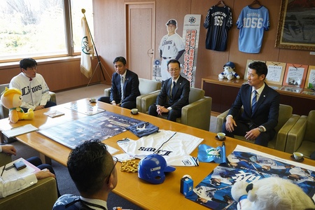 今年もプロ野球の季節が到来。3月27日(金曜)のシーズン開幕にあたり、埼玉西武ライオンズが市長を表敬訪問しました。